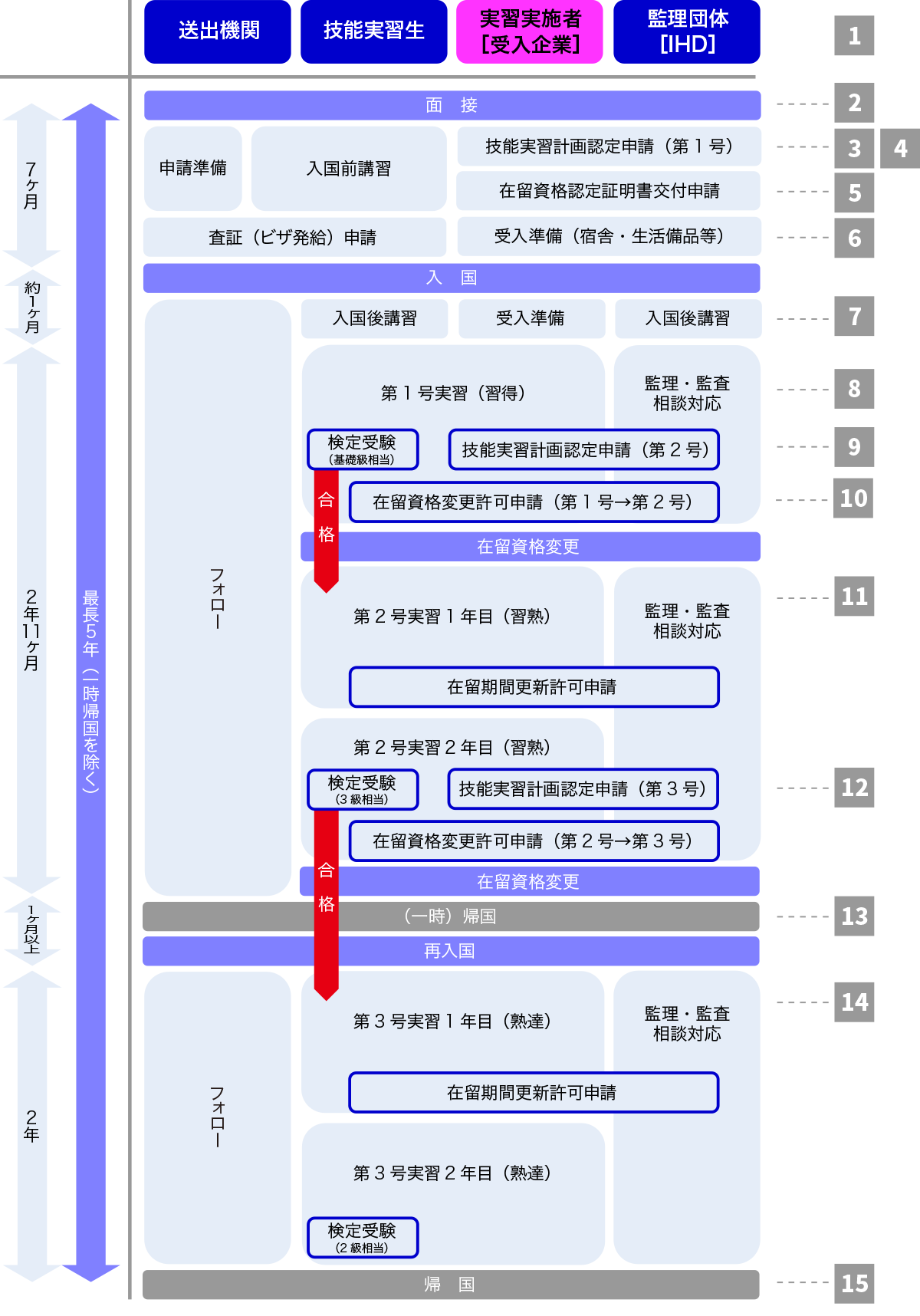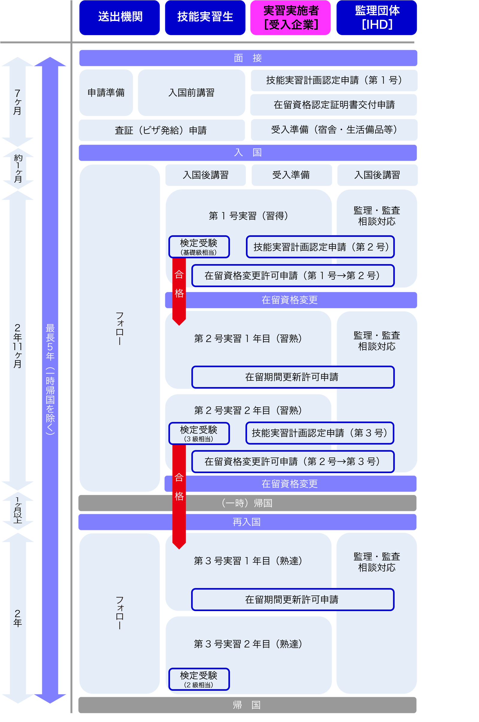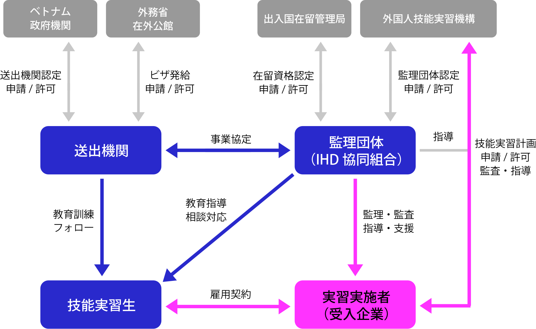 (技能実習法に基づく体制についてはIHDが助言指導致します。)
